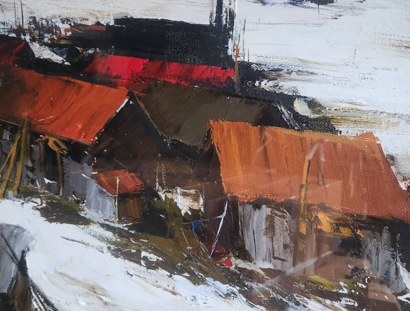応接間には絵画や陶器などが沢山並べられており1点ずつ拝見させていただきました。絵画は1点でしっかり値段が付く絵画からあまり価値の無い絵画までありましたが、買い取りさせていただいた絵画の中には画像に掲載の葛西四雄の絵画などもありましたので、しっかり査定し買取させていただきました。葛西四雄は青森県出身の画家で北国の漁村をモチーフに赤い屋根を描いた作品が人気で日展特選など活躍された画家であり現在でも高額取引されております。