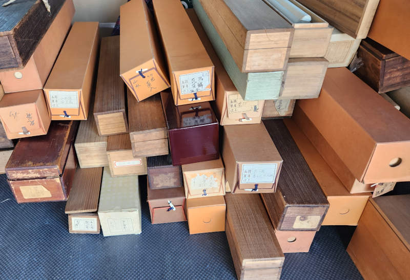 おそらく先代はかなりの金額で収集されたように思いますが、現在の中古市場の価値では1本で高額をお付けする事は難しい品が多い事もお客様はご理解しておりました、掛け軸の他にも多少の骨董品などがありましたので骨董品も買い取りさせていただきました。
